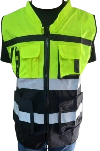 A rugged 160 GSM tactical vest with multiple gear pockets, perfect for traffic marshals, road crews, and technicians.